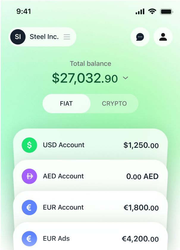 Manage your fiat and crypto payments in one place, either in your mobile app or our web platform
