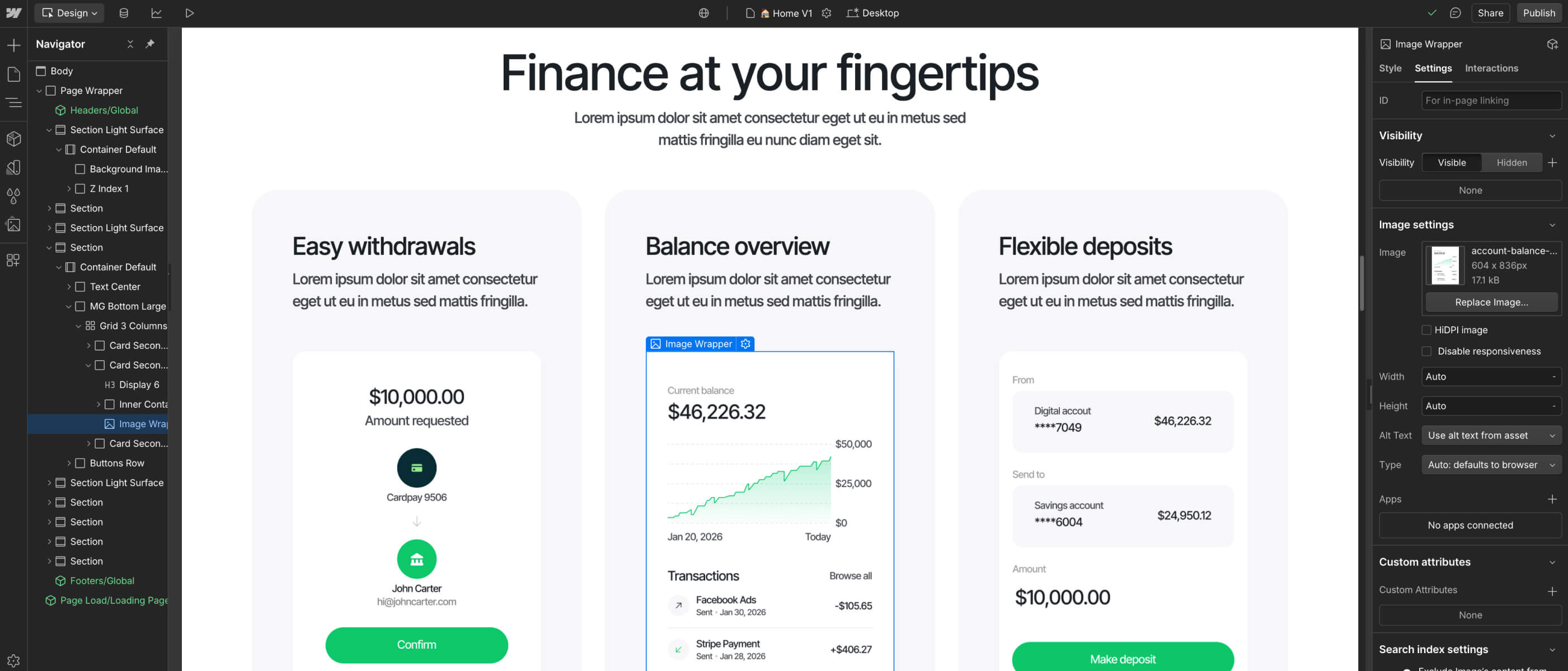 As you could see above, Cardpay was built on Webflow using the best practices to make it very easy for you to edit the template and customize it to your needs.